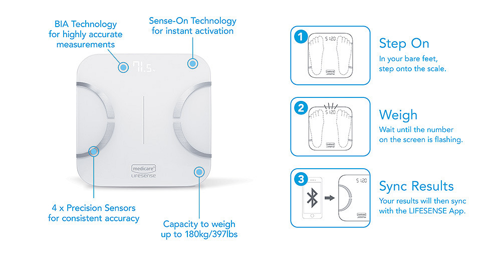 The LIFESENSE Body Analysis Smart Scale, that use BIA technology to provide these detailed measurements at home.