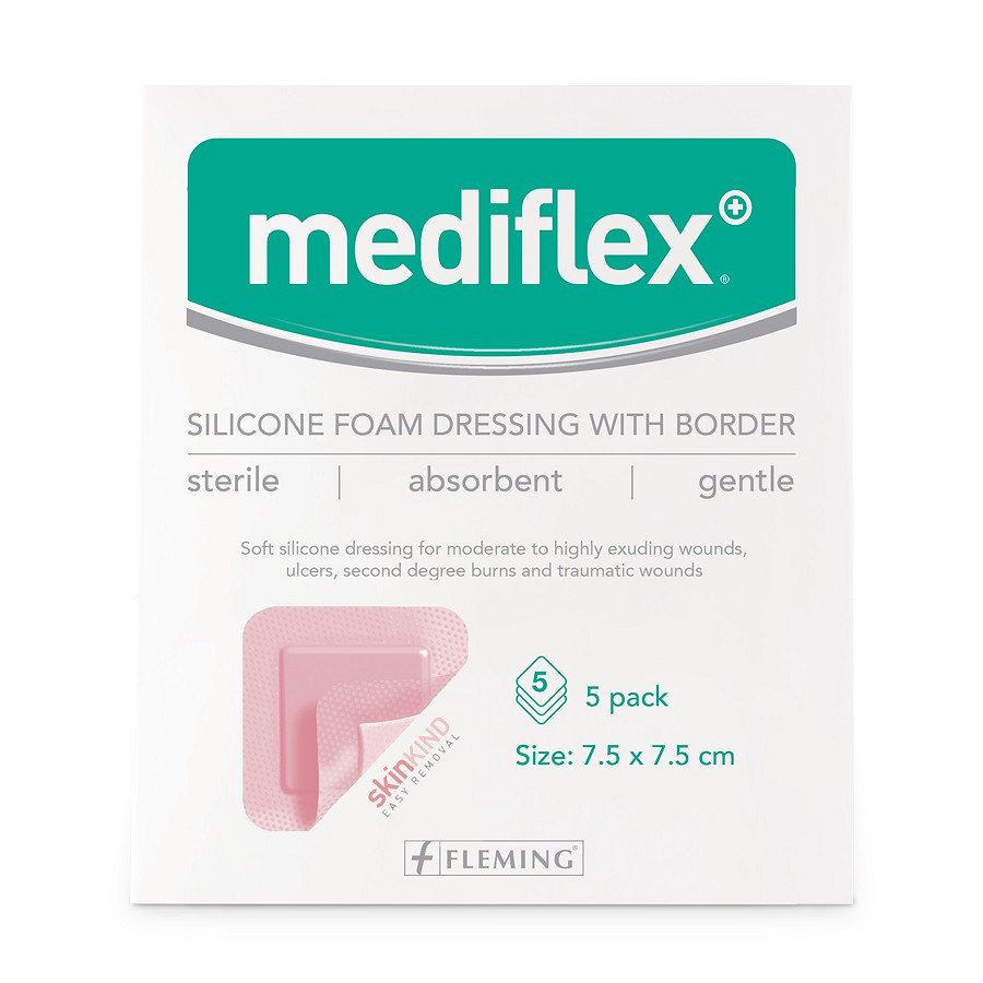 MEDIFLEX BORDERED SILICONE FOAM 7.5CM X 7.5CM - BOX OF 5